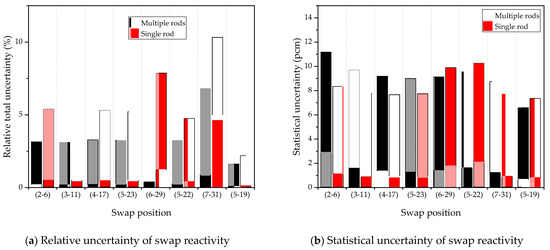 (a) Relative uncertainty and (b) statistical uncertainty by swap reactivity measurement position.