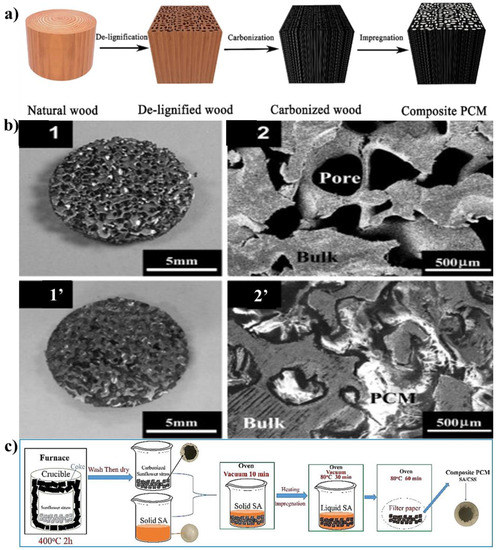 - Yang, Z.; Deng, Y.; Li, J. Preparation of porous carbonized woods impregnated with lauric acid as shape-stable composite phase change materials. Appl. Therm. Eng. 2019, 150, 967–976. [Google Scholar] [CrossRef]