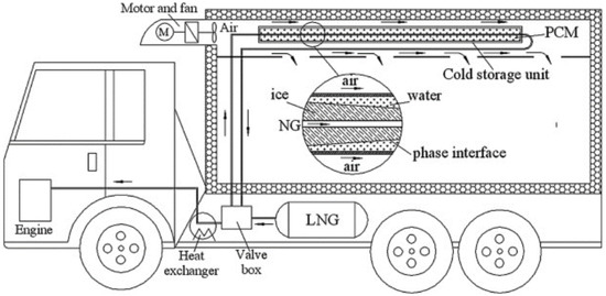 - Tan, H.; Li, Y.; Tuo, H.; Zhou, M.; Tian, B. Experimental study on liquid/solid phase change for cold energy storage of Liquefied Natural Gas (LNG) refrigerated vehicle. Energy 2010, 35, 1927–1935. [Google Scholar] [CrossRef]