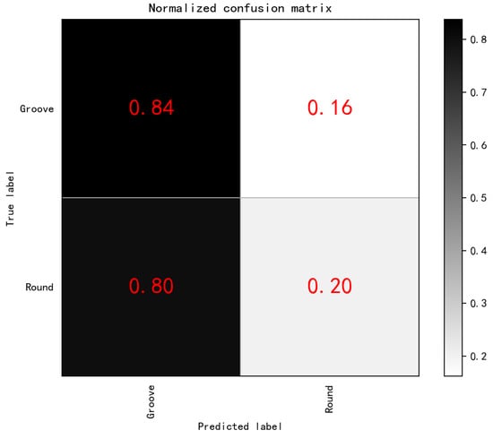 Hog was also used to extract defect features, and the features were input into the Naive Bayes algorithm. The HOG–Naive Bayes Model was used to predict and classify SDH and slot defects in the TFM image, and the confusion matrix was obtained, as shown in Figure 12. The accuracy of slot defect prediction was 84%, with 16% of slot defects misinterpreted to be SDH defects. The accuracy of SDH defects was only 20%, and 80% of SDH defects were mispredicted to be slot defects.