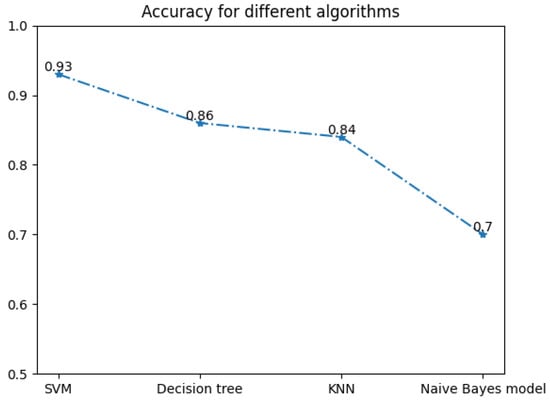 The Naive Bayes classifier is a classification method based on conditional probability. Its principle is based on Bayes’ theorem, which is mainly used to predict the classification possibility of the unclassified data and to select the class with the highest probability as the final category of the sample [30]: