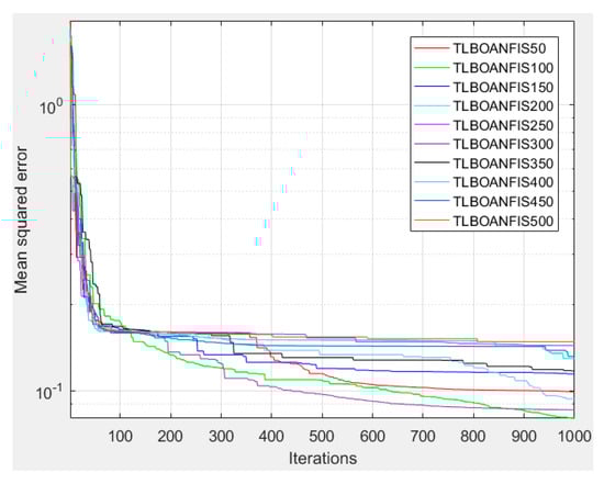 Alteration of MSE versus iterations for the TLBO–ANFIS.