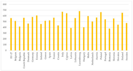 The number of passenger cars per 1000 inhabitants differs significantly among countries from 379 in Romania to 682 in Luxembourg (Figure 6). These differences are influenced by many factors, such as geographical aspects, distribution of the population, the tax policy of a country, affordability and other economic aspects, the development of public transport infrastructure, etc. The well-developed public transport infrastructure is one of the essential cores for sustainable transport development.