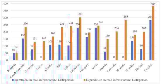 Investments and expenditures on road transport infrastructure in EU countries in 2020, EUR/person. Source: [].