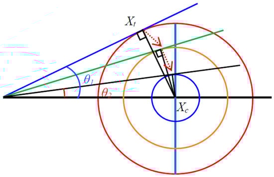 To prevent trapping at a local minimum, the angle is changed randomly. Figure 2 is provided for more clarity. Point defines the population of the CSA optimization algorithm. Meanwhile, defines the optimal solution of the CSA. The CSA optimization algorithm updates the population corresponding to moving in the direction of .