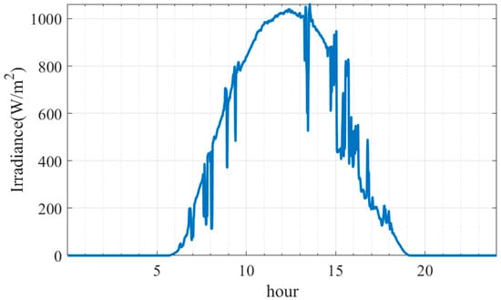 Solar irradiance through a typical day.