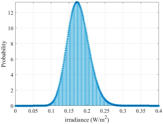 The Beta probability density function is used to model the irradiance. Thus, it is mathematically expressed in Equation (11):