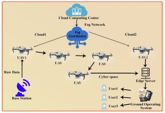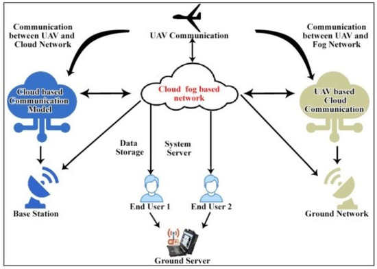 The proposed block chain-fog based network (BFN) connects to the Internet of Everything (IoE) and fog nodes of UAV. The distributed technology provides on-demand services thereby higher performance and less latency rate are achieved. From the citizen’s point of view, their quality of life is improved and their expectations are met. Fog computing supports the components of IoE for quick data processing as latency is low [30]. By utilizing its unique features, such as immutability, effective cryptography, and distributed decentralized storage systems, the introduction of blockchain innovation will address these issues [31,32,33,34,35,36]. The authors [37] evaluated and organized all cryptographic ideas currently employed in blockchain technology in-depth. We also provide a list of cryptographic ideas that have not been used yet but could greatly enhance state-of-the-art blockchain solutions.
