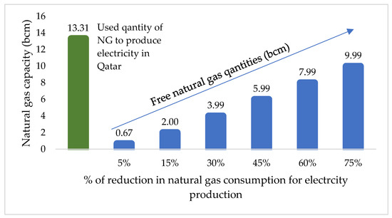 - Reducing local natural gas consumption for power production by relying on renewable energy resources can free some quantities of natural gas. If 15% of locally generated electricity is produced from renewables in Qatar, around 2 BCM of natural gas can be saved and used for exportation purposes. More free natural gas can be obtained if more local electricity is produced from renewables.