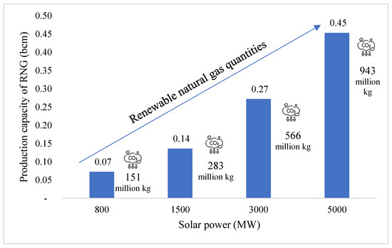- Producing RNG from green hydrogen and captured carbon dioxide results in increasing natural gas quantities which can be exported to Europe. Use of renewable resources (wind and solar) in Qatar to produce 5000 MW of renewable power can lead to the production of 0.45 BCM of RNG, which can be exported to Europe.