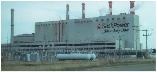 The first industrial-scale CCS project was launched at Boundary Dam SaskPower, Saskatchewan province, Canada, in October 2014; see Figure 3. The Boundary Dam Project is the integration of a rebuilt coal-fired generation unit with carbon capture technology as a post-combustion CCS project. The captured technology used in this project is amine solution absorption [65].