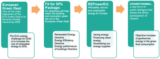 Fernández Fuentes, I.; Barich, A.; Baisch, C.; Bodo, B.; Elíasson, O.; Falcone, G.; Friederichs, G.; Gregorio, M.d.; Hildebrand, J.; Ioannou, A.; et al. The CROWDTHERMAL Project: Creating Public Acceptance of Geothermal Energy and Opportunities for Community Financing. Energies 2022, 15, 8310. https://doi.org/10.3390/en15218310