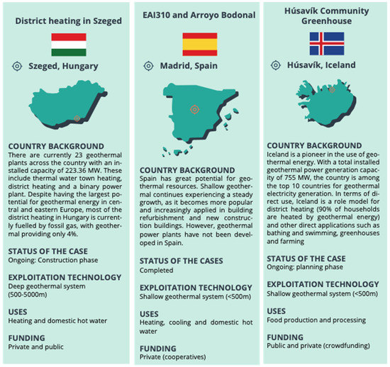 Table 3. Case studies type/project phase of geothermal community funding [44].