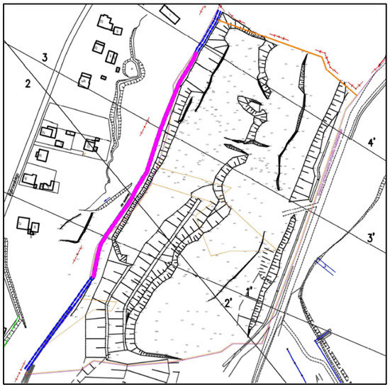 Location of ditch failure with a section of 300 m long, marked in pink.