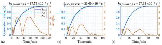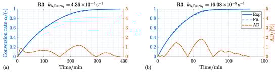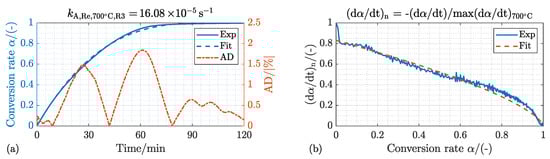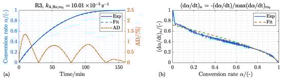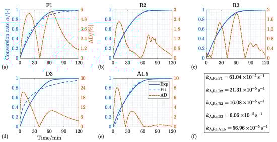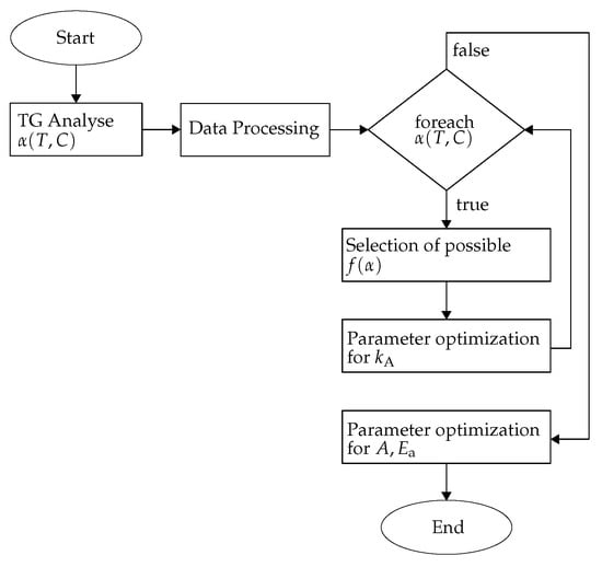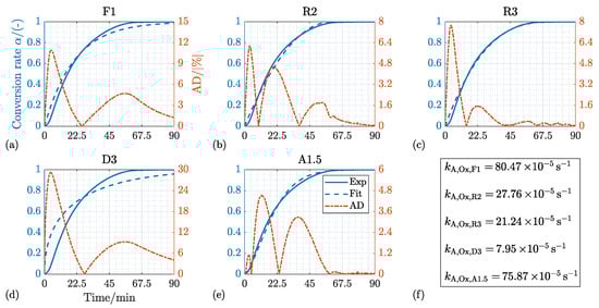 For the parametrisation of the mechanistic models, it is common to use the “model-fitting” method [62,63]. Based on the fitting method, as well as can be determined by fitting the integral form of Equation (34), which is described by