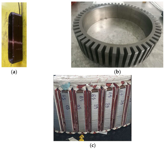 Physical model of: (a) winding coil; (b) magnetic core; (c) stator.