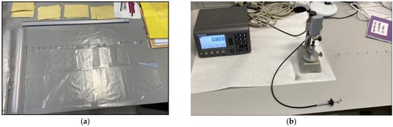 Average thickness of the films was tested following UNE-ISO 4593:2010 by measuring 20 random equidistant samples per film with a micrometer (Heudenhain ND287, Traunreut, Germany) (Figure 3).