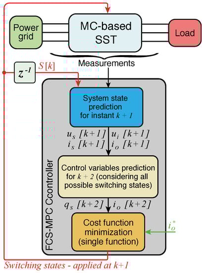 Schematic of the MPC scheme proposed in [] for the AC/AC matrix-converter-based SST.