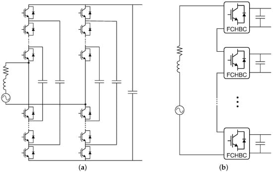 Examples of the most investigated AC/DC converter topologies (FCC). (a) Single-phase N-level FCC (adopted in []), (b) FCC in a modular configuration (adopted in []).