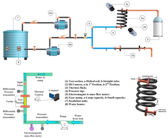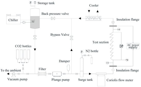 Schematic diagram of the experimental test facility for the investigation of the heat transfer of supercritical CO2 in helically coiled tube [49].