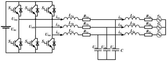 Topology of a three-phase LCL-type grid-connected inverter.