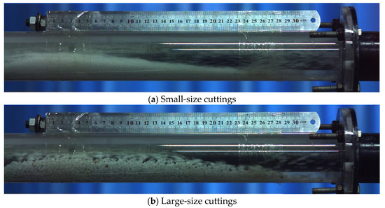 Cuttings transport experiment for cuttings with different sizes.