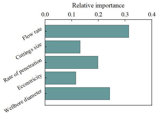 (2) Based on the relative importance analysis of the input variables, it was found that the order of the importance of these variables is: flow rate, wellbore diameter, rate of penetration, cuttings size, and eccentricity.