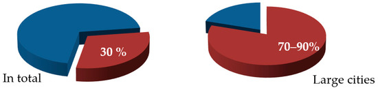The contribution of vehicle transport equipped with combustion engines to atmospheric pollution in general and in cities is shown in Figure 4.