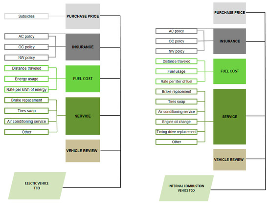Irrespective of the type of analysed vehicle, the TCO constituent costs considered in this research were divided into the following categories: