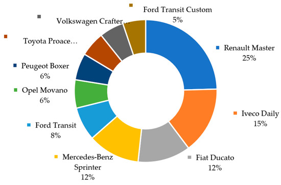 Figure 11. Market share of new light commercial vehicles (up to 3.5 t) by fuel type in 2020 [20].