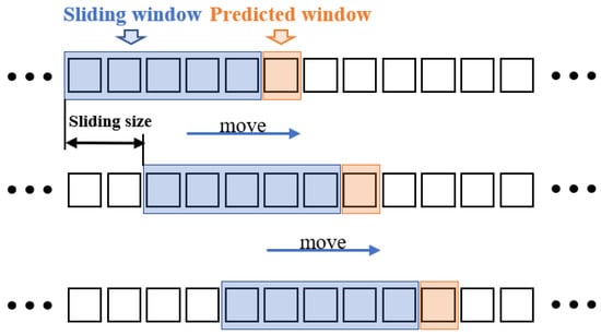 A variety of sample division methods have been proposed, and sliding windows are commonly used to perform temporal sample division. The use of a sliding window to divide the samples is shown in Figure 6. The key to the sliding window is the selection of the window size and the sliding size. The sliding size should not be set too high, so as to ensure the continuity of the predicted voltage data. The voltage data of each moment should be obtained by averaging at least two predicted values. Additionally, the sliding size should not be set too low, so as to avoid the averaging of too many predicted values, which would make the prediction curve too smooth and cause detailed information to be lost. Therefore, the sliding size is set to half of the predicated window size (PWS).