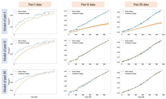 To verify the superiority of the state partitioning method, the models were trained separately using three data partitions, and each partitioned model was used to predict the data of the different partitions. The prediction results are shown in Figure 10.