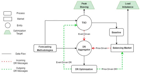 Interactions between the TSO and a DR aggregator entities in the DR process.