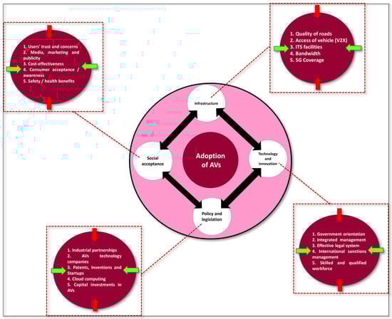 Another issue with societal acceptance of AVs is “responsibility.” There are numerous uncertainties surrounding AVs right now, such as who is accountable in the event of an accident [33]. Because of these uncertainties, people have been hesitant to adopt this new technology. Further explanations on “cyber security,” “privacy,” and “responsibility” will be provided in Section 2.4 (policy and legislation). In other circumstances, the navigation system of AVs is sensitive to severe weather conditions e.g., fog, rain, snow, etc., and dark regions e.g., the entry or departure of a road tunnel, limiting people’s adoption of this technology [34,35]. It is critical to have appropriate knowledge about new technology and the benefits of AVs to enhance the adoption of AVs. The individual and social advantages of utilizing AVs have a beneficial impact on the technology’s acceptability. Users are typically attracted to benefits that save them time and money [36], such as shorter travel times, less congestion, and greater fuel economy.