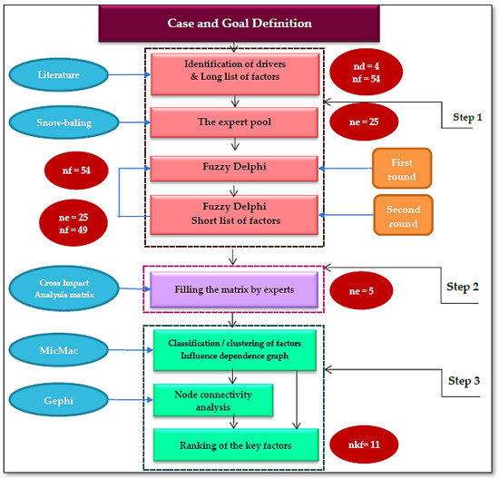 The research process (nd= number of drivers, n e= number of experts, nf= number of factors, nkf= number of key factors).