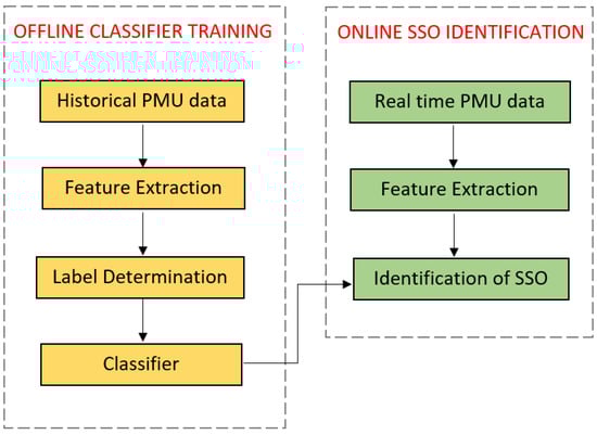 The data driven SSO identification method introduced in [] detects SSO from a large set of PMU data. Accordingly, the multiple support vector machine (SVM) algorithm is used to detect SSO. Appropriate SSO parameter identification techniques can then be used to estimate SSO parameters. The advantage of this method is that it can detect SSO from a vast set of PMU data, and relatively low computations are required as SSO parameter identification needs to be carried out only in the selected data. Therefore, this method can be used for real-time monitoring of SSO in the power grid.