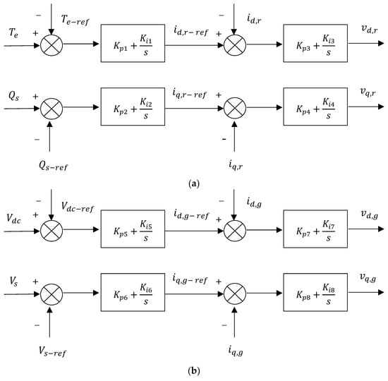 DFIG converter control system: (a) RSC control, (b) GSC control.