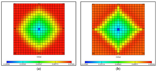 Residual oil saturation diagram on June: (a) Darcy seepage; (b) non-Darcy seepage.