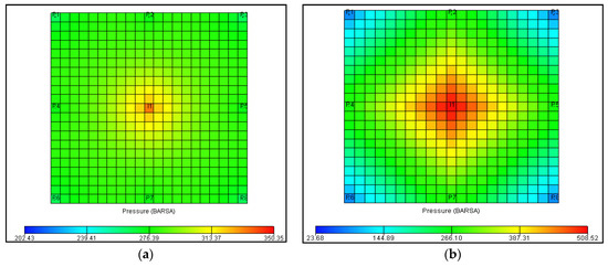 Pressure distribution map on March: (a) Darcy seepage; (b) non-Darcy seepage.
