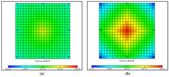 Pressure distribution map on January: (a) Darcy seepage; (b) non-Darcy seepage.
