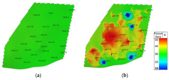 Pressure profile in April 2020: (a) Darcy flow; (b) non-Darcy flow.