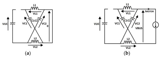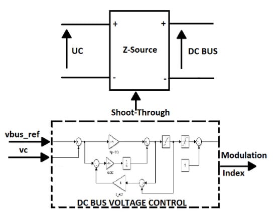The modeling and control of a bidirectional ZSI can be found in the literature []. The authors in [] worked on a small signal model of a BqZSI. In a Z-source, the average voltage value applied to the DC bus is equal to the average voltage value of the capacitor (or ),