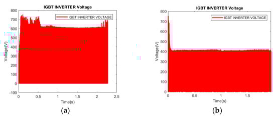 The spectrogram will be used to study the harmonic spectra distribution over time of the UC voltage and the motor torque. Low and high frequencies could have effects on UC ageing. The inverter output voltage analysis is also a cause of increased ion losses (eddy current losses, hysteresis losses), electromagnetic interference, and formation of destabilizing torque. The presence of high frequencies in the BqZSI is noticeable comparing to the 3-level/SVPWM topology (Figure 26) leading to higher influences of the perturbations and losses cited.