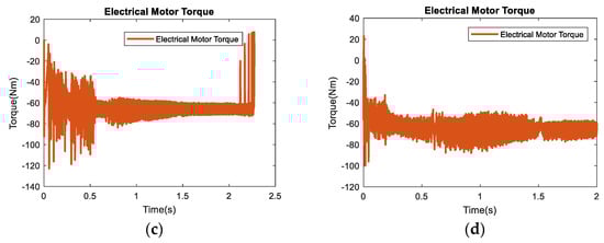 From the AC side control (Figure 7), the objective is to provide a braking torque at a certain wheel speed rotation. The authors have already described the torque control strategy based on the regeneration of current references in [].