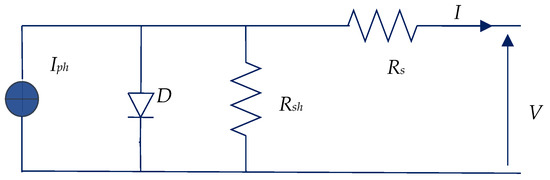 where Iph (A) is the saturation current, Vth (V) is the thermodynamic potential, K (J.K−1) is Boltzmann’s constant, T (K) is the effective cell temperature, e (C) is the electron’s charge, n is the nonideality factor of the junction, I (A) is the current provided by the cell, and V (V) is the voltage across the cell.