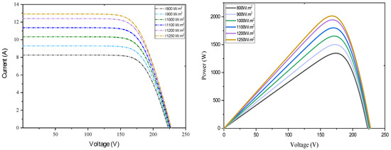 Current-Voltage and Power-Voltage characteristics of GPV under variable irradiance.