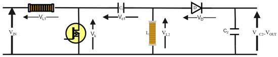 The SEPIC is a direct-voltage-to-direct-voltage converter that will allow the output to be greater than, less than, or equal to the input voltage [28]. This is because the voltage of the converter is controlled by the duty cycle. In addition, the SEPIC is analogous to a buck-boost converter with the benefit of having a noninverting output. In effect, it ensures low current ripples. In terms of construction, the SEPIC converter consists of a power switch (IGBT; MOSFET, Thyristor, etc.), a diode, inductors (L1, L2), and capacitors (C1, C2). Figure 4 shows the electrical diagram of this converter. The input inductance L1 of the circuit makes the whole SEPIC converter look like a boost converter. This converter also has the advantage of isolating the input and output by means of the coupling capacitor C1, which protects against a short circuit or an overload at the output. Moreover, the SEPIC has the advantage of being able to cut its output voltage down to zero voltage, unlike a boost converter where the lowest output voltage is equal to the input voltage.