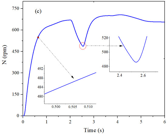 Simulation results for direct coupling. (a) Instantaneous power extracted from the GPV, (b) terminal voltage at the pump motor, (c) rotation speed of the pump motor.