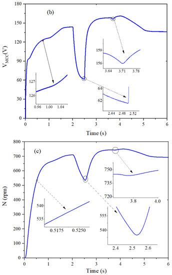 Figure 14 shows the simulation results of the indirect coupling between the GPV and the motor pump using the SEPIC converter endowed with the M-INC technique. Figure 14a–c shows, respectively, the variation of the instantaneous electrical power, voltage, and rotational speed of the motor pump as a function of time. From Figure 14, it is important to note that the tracking speed is significantly higher than that obtained by the P&O technique. Indeed, under standard conditions, a value of 1654 W is noted, which is a gain of almost 3% compared with the P&O technique. In addition, the behavior of the M-INC control is quite satisfactory. Indeed, the tracking speed is significantly improved due to the fact that the system adapts quickly to changes. However, in the case of sudden changes in irradiance (t3), the system suffers from overshoot, which affects the quality of the energy transmitted to the motor pump. The speed of the motor pump with this technique is significantly improved compared with the P&O technique, as shown in Figure 14c. The same behavior is observed for the voltage characteristic curve. Finally, the results obtained highlight the drawbacks of coupling by the M-INC technique for an application where the irradiance variation is very unstable. The power is significantly improved and does not deviate much from the MPP under unstable weather conditions, except that it suffers from power overshoot, which will affect the power quality.