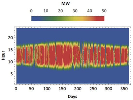For this work, “QR-Loss” was assumed constant at a typical value of 30 kW/m2 [43]; as a consequence of keeping a constant “QR-Loss”, the product “ηSFiDNIiASF” can be lower than “QR-Loss” for low DNI values or low solar field´s efficiencies. In these cases, “ESolari” was changed by zero.